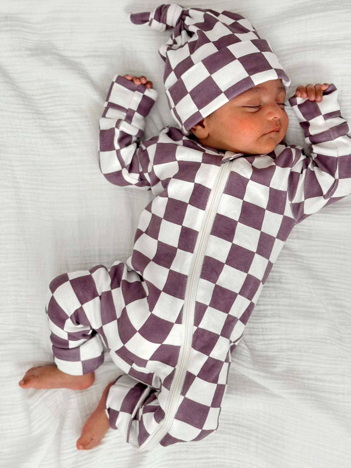 Berry Cheesecake Checkerboard / 2-Way Zip Romper