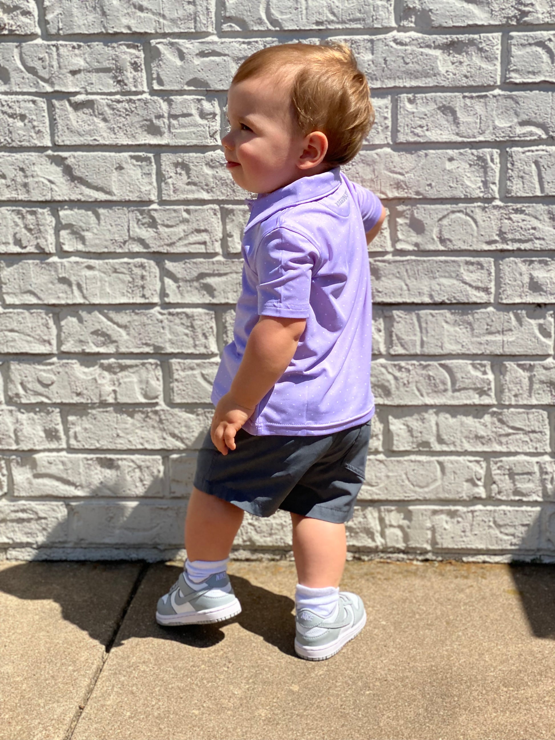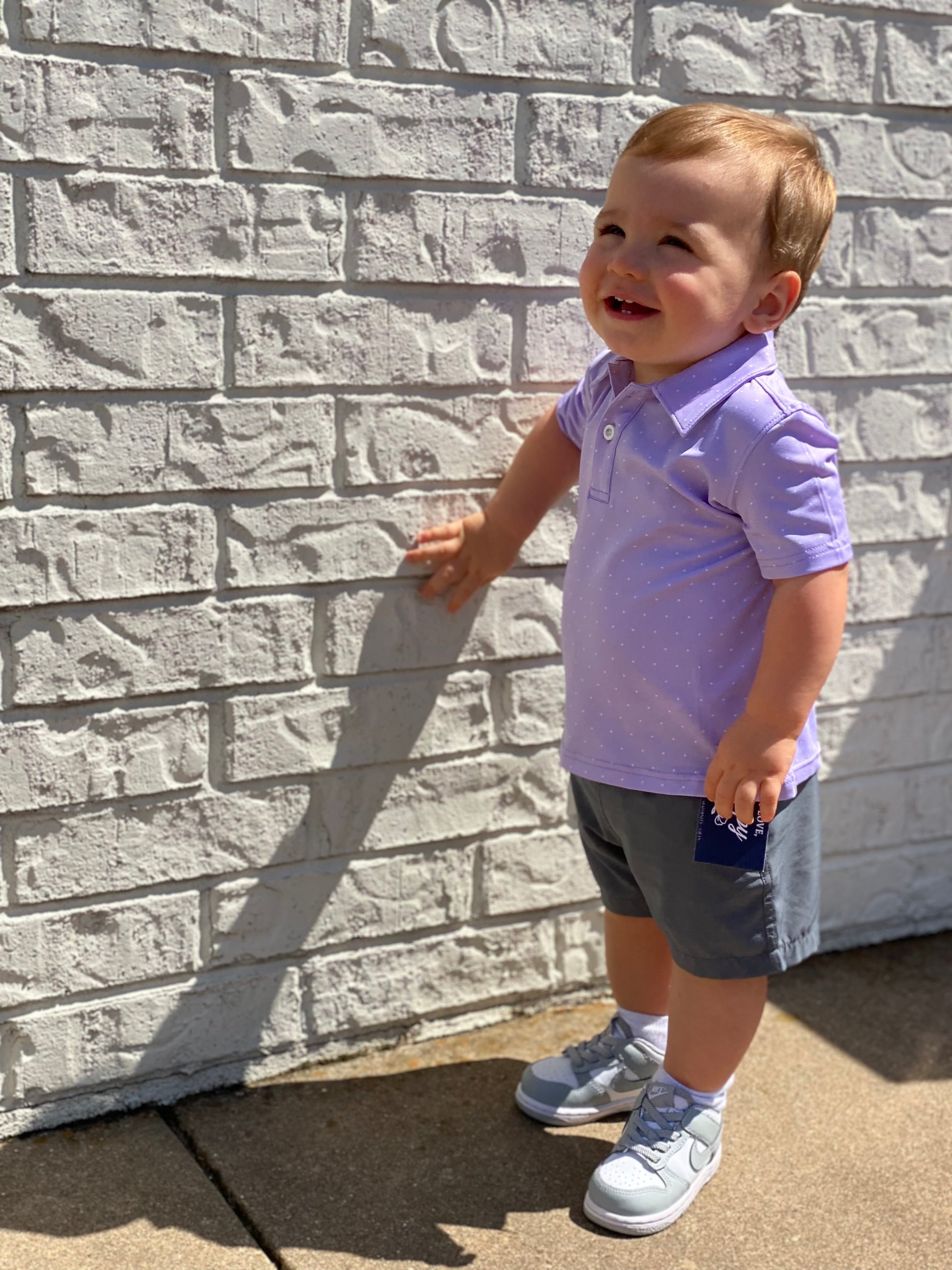 He can dress just like dad with this Knit Short Sleeve Performance Polo. Made with stretch material, this polo is perfect for the active little guy.