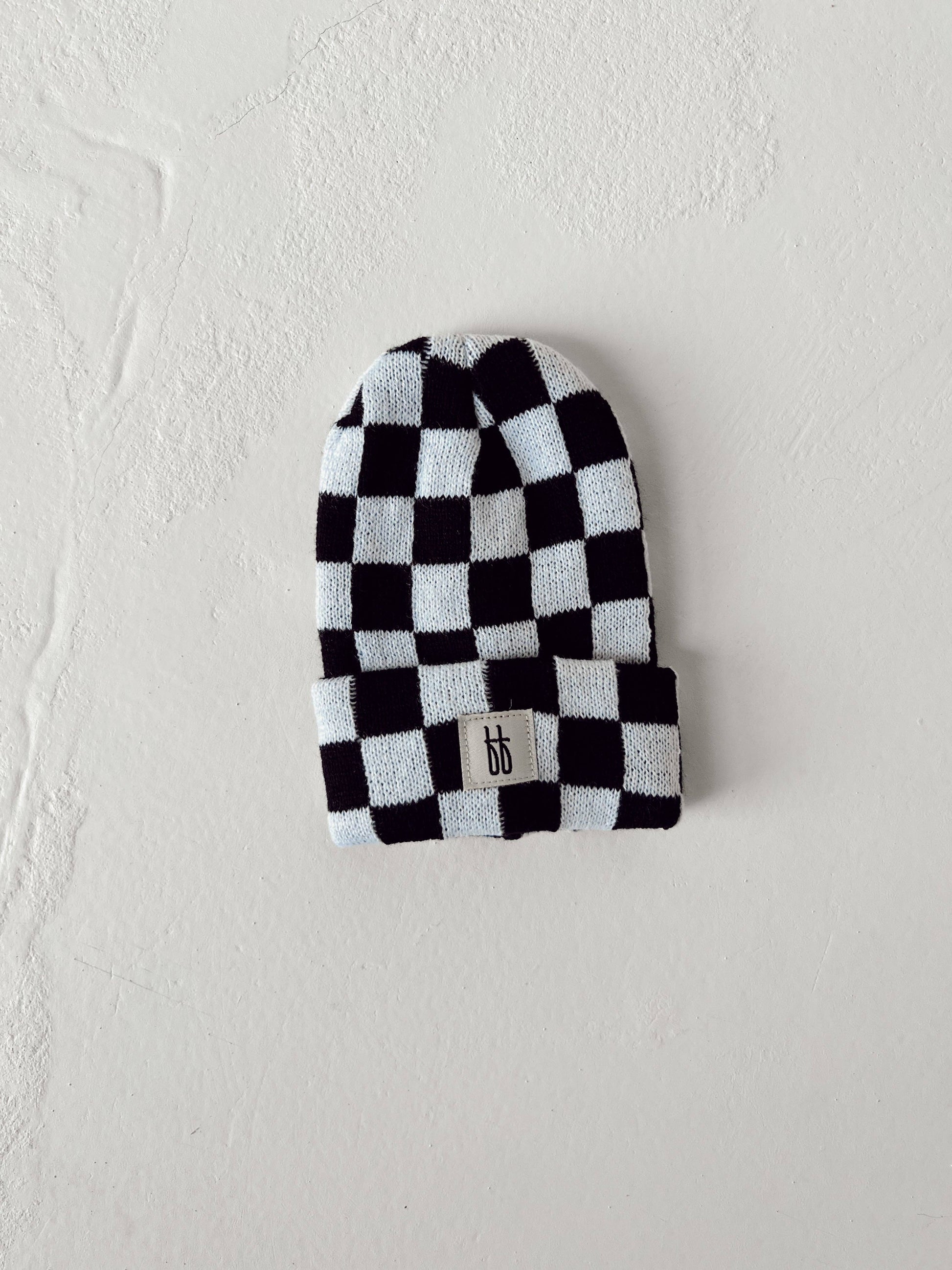 Knit Beanie | Black + White Checkerboard