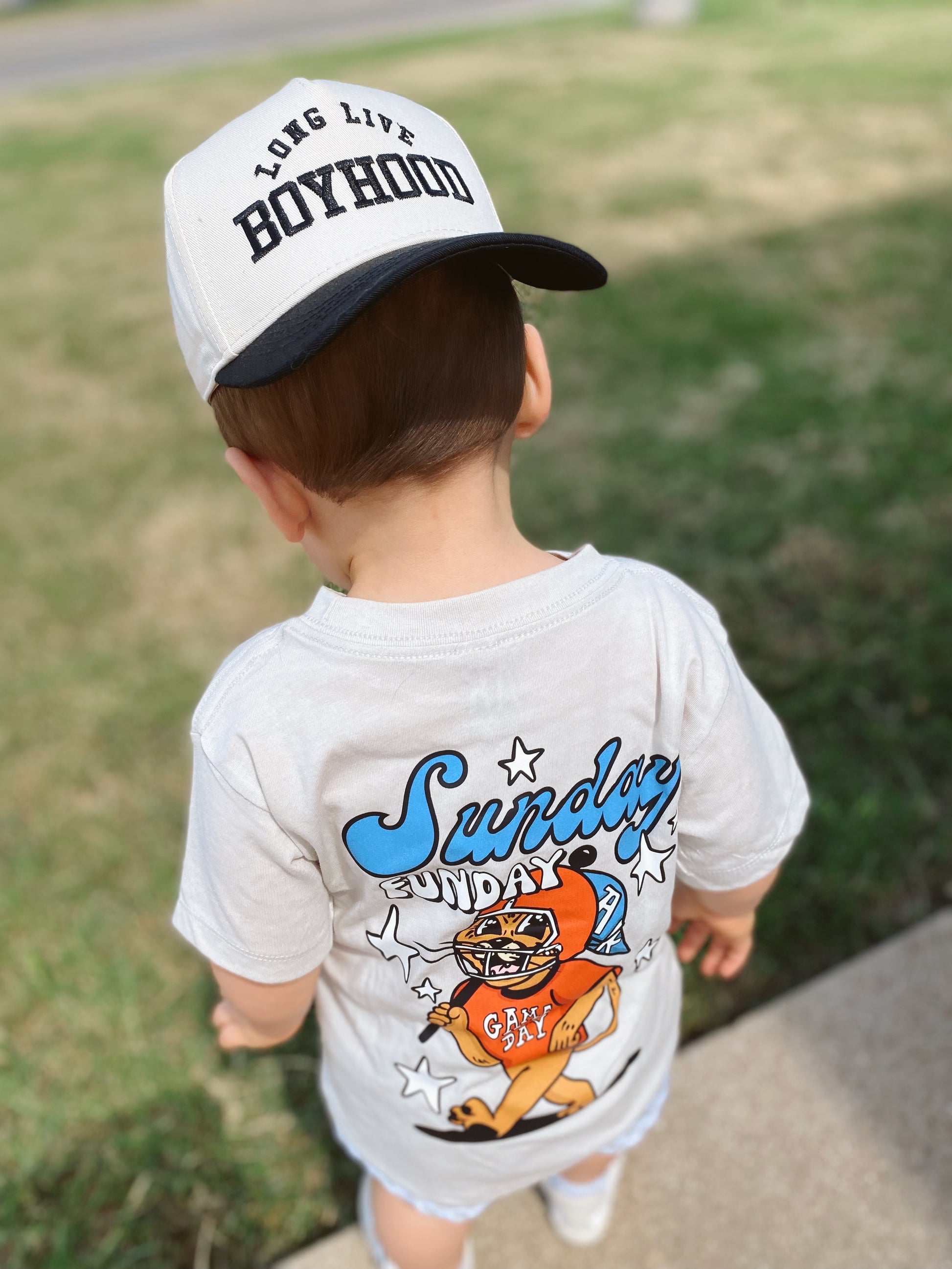 The adjustable snapback ensures a customizable fit for growing children, available in three sizes: X-Small (0-12 months), Small (12-24 months), and Medium/Large (2-9 years). Whether as a baby baseball cap, toddler trucker hat, or youth snapback, this versatile accessory combines practicality, comfort, and style for all occasions.