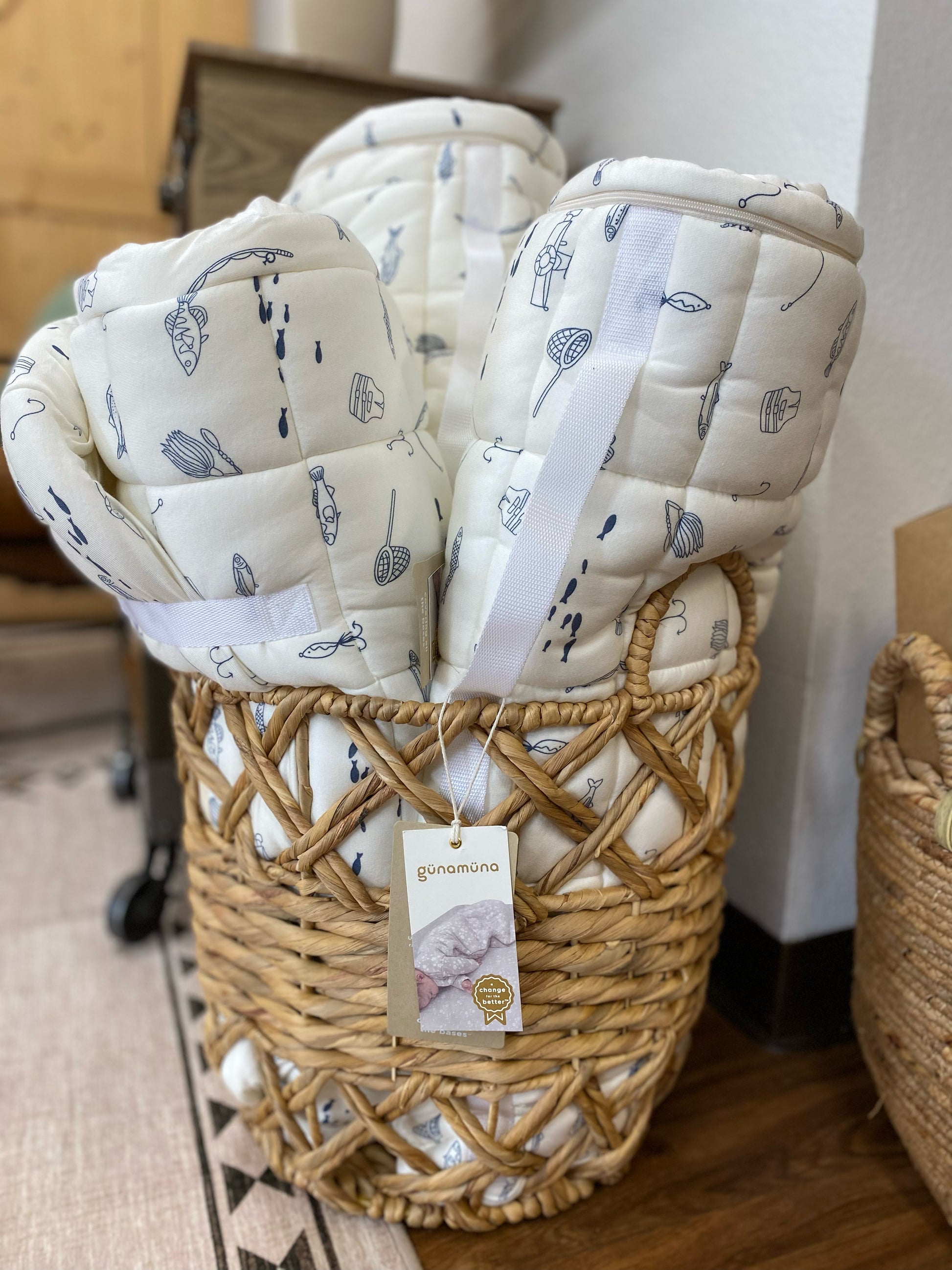 Extra padding on the bottom for luxurious cushioning Removable cloud pillow for easy washing Featuring our unique zipper to keep those littles tucked in and cozy for nap time.