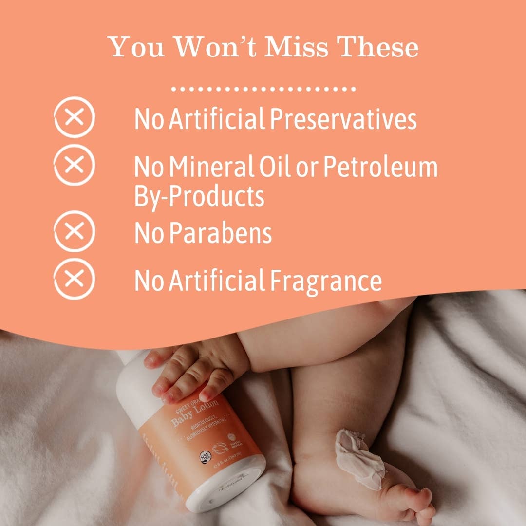 Just when you thought a baby couldn’t smell any yummier! Earth Mama’s Sweet Orange Baby Lotion is a smooth, moisturizing vanilla-orange blend, rich with organic oils, calendula and rooibos to comfort and soothe delicate skin. Formulated to be safe for newborns, this lotion is good for skin of all ages. Because why should babies be the only ones with soft skin?