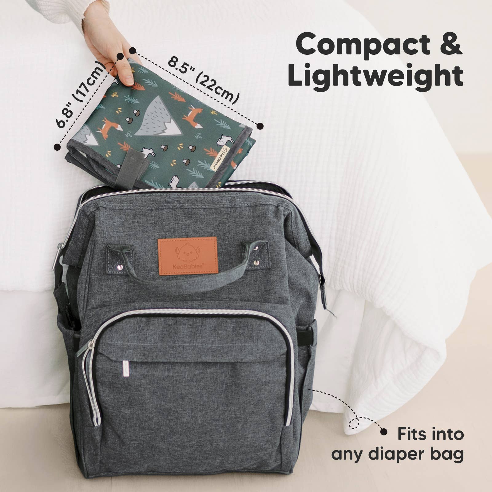 - Portable changing pad for travel with compact folded size