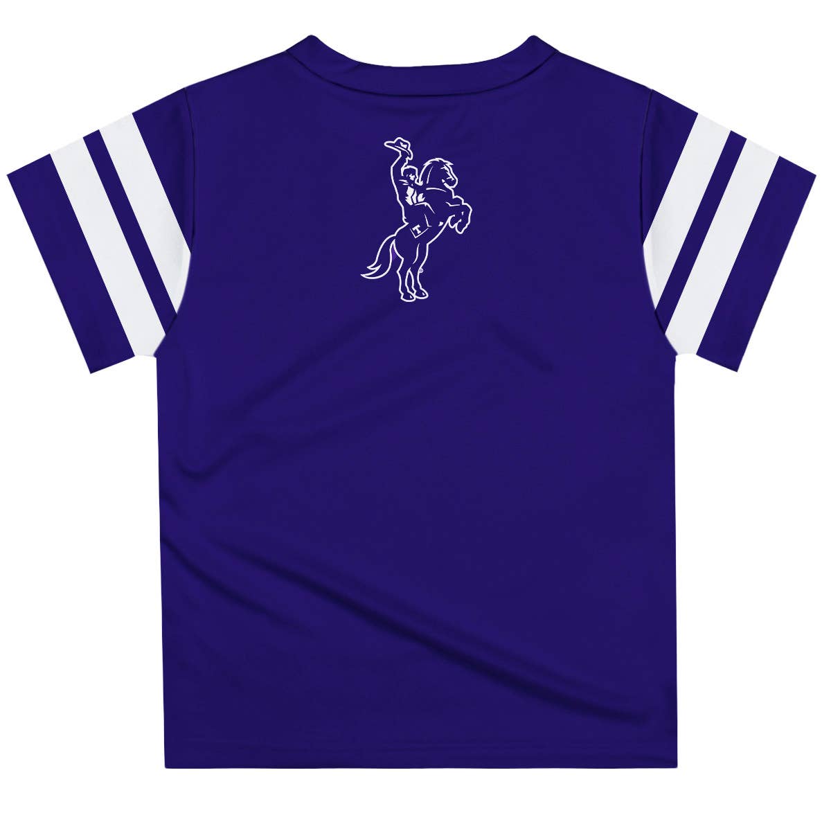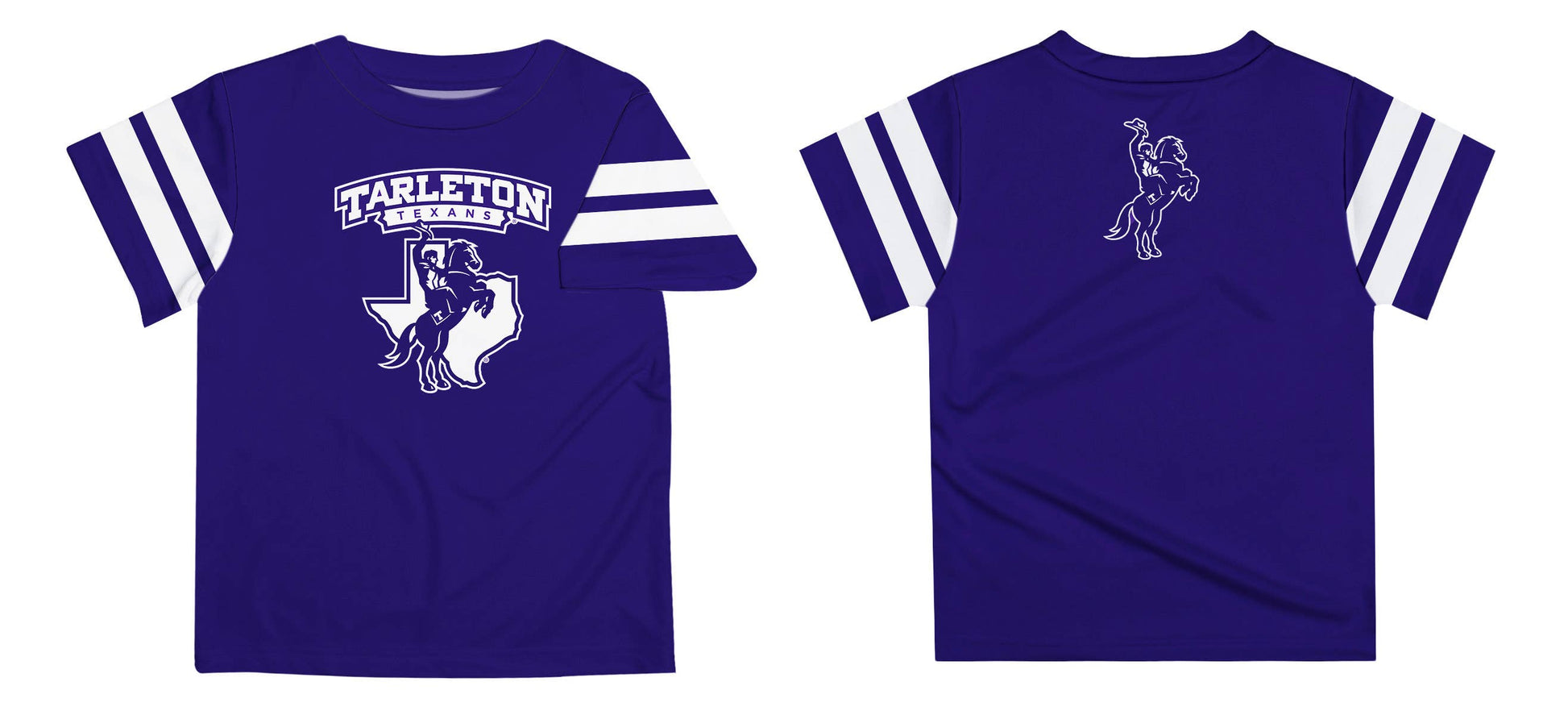 - Tarleton State University Game Day Purple Short Sleeve Tee with Stripes on Sleeves