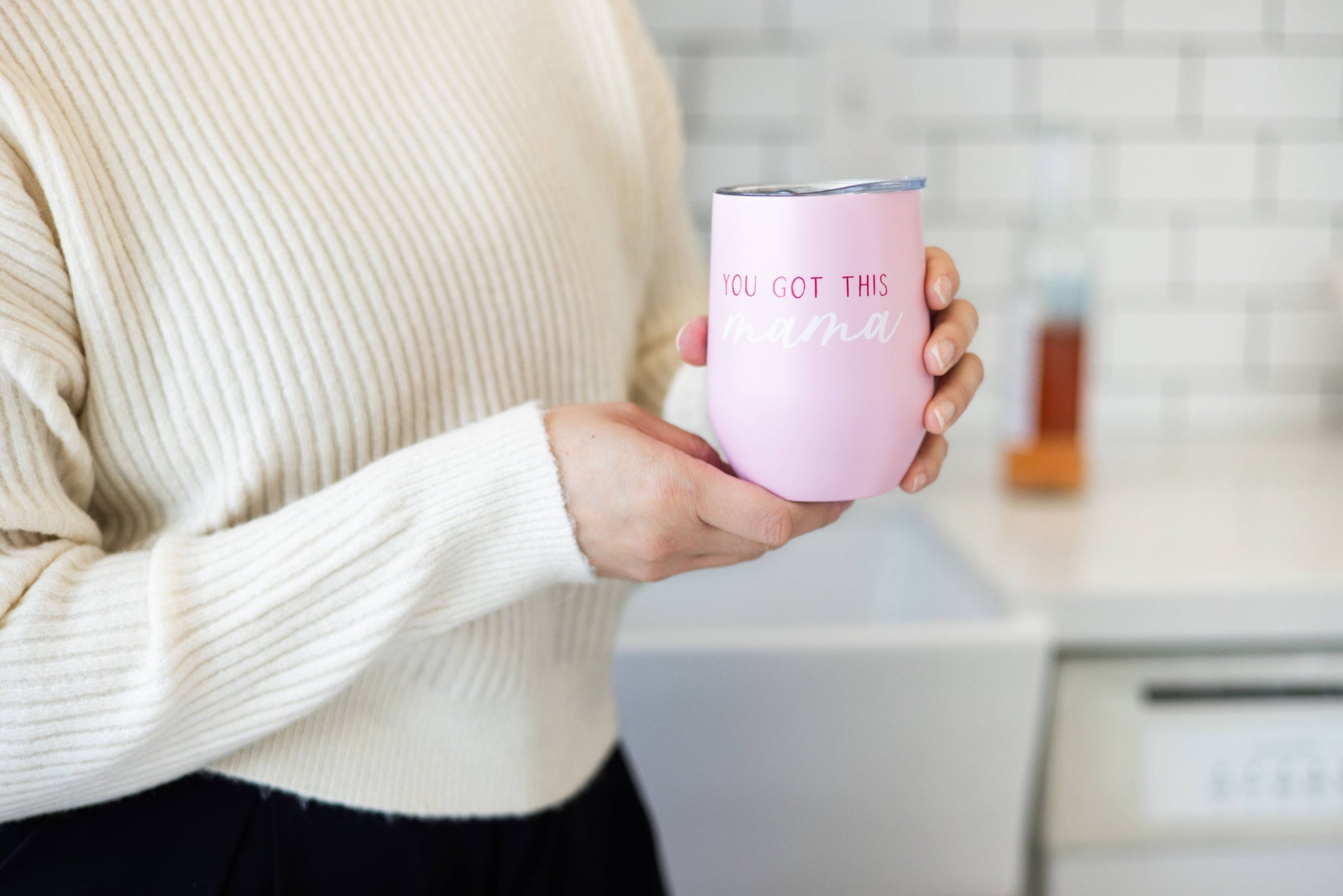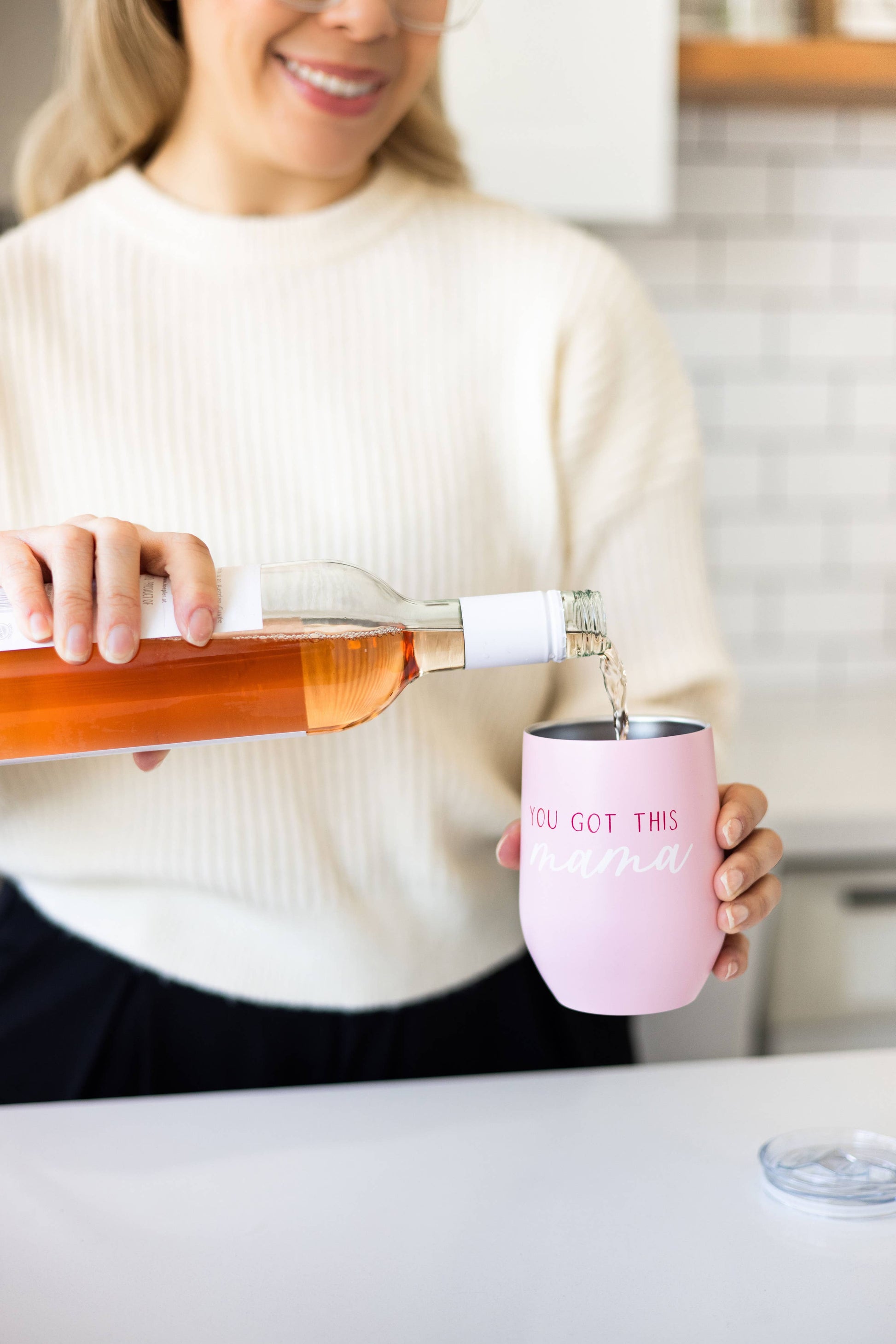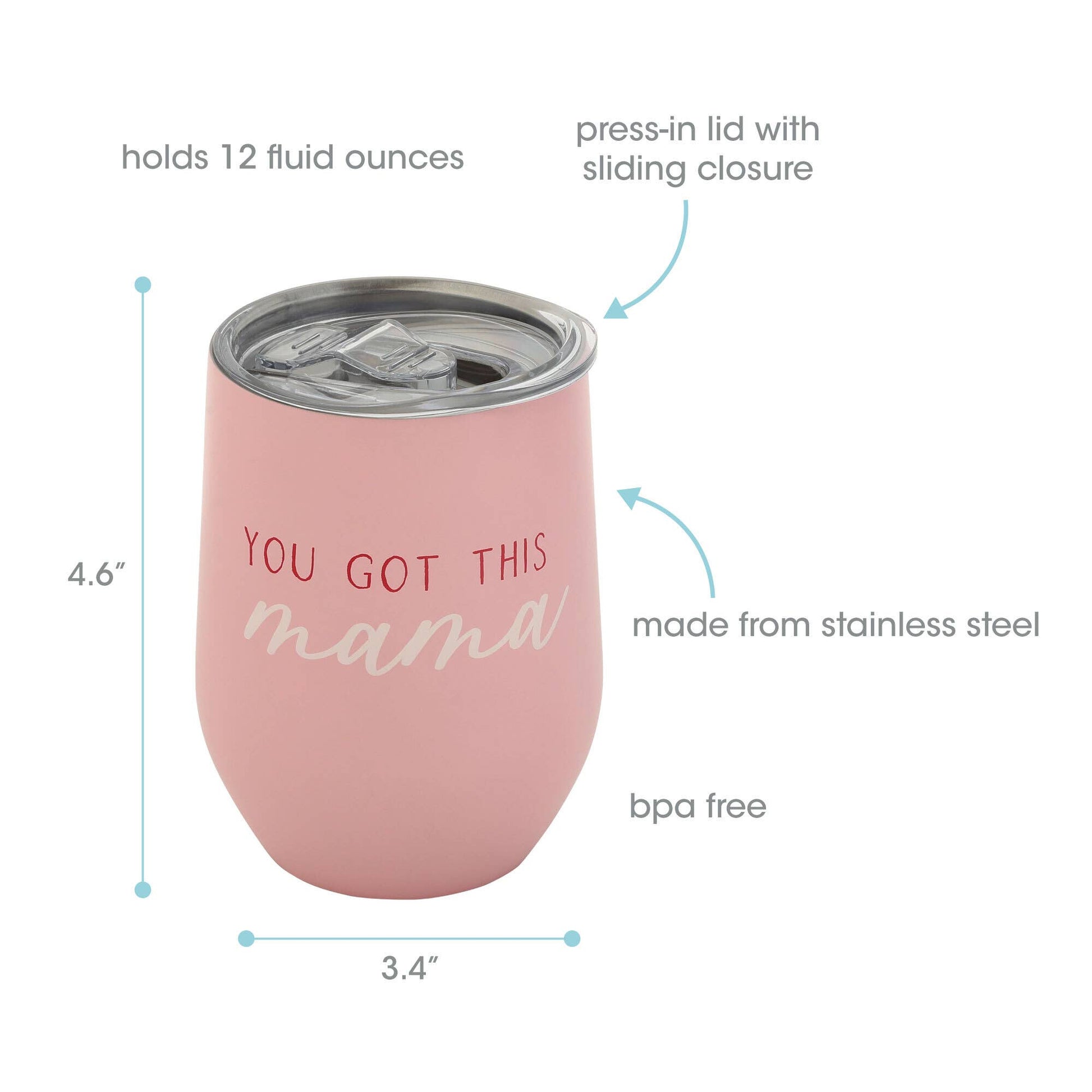 - Includes one double walled stainless steel stemless wine travel tumbler with splash resistant, press-in lid with sliding sipper closure, BPA free